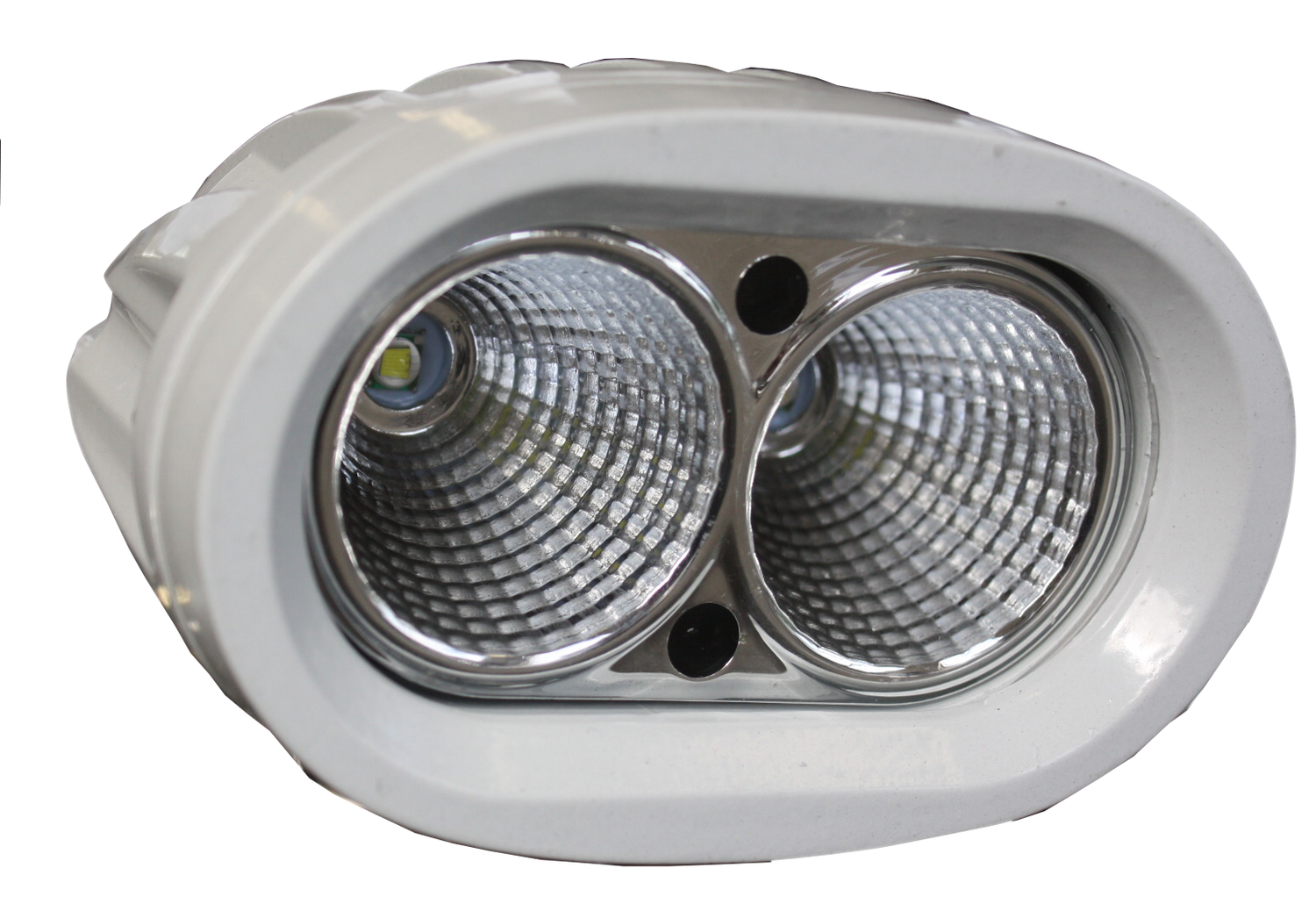 The Brand New CREE 20W LED Deck Flood Light made to our specification to meet the high quality standards only Viper product demands. Designed to light up your deck, bow or any external area you need to light up and its power consumption is so low it wont flatten your batteries. Includes are stainless steel mounting hardware -IP67 Waterproof designed for Marine Use -2 X 10W CREE LEDs -Operating Voltage: 10-30V DC -Lumen: 1800LM -Colour Temperature: 6000K~6500K -Operating Temperature: 40 degrees C~85 degrees C -Material: Diecast Aluminium Housing - Mounting Bracket: 316 Stainless Steel Supplied - 30000 Hours Life Time - Housing Colour: Powder Coated White -9.6cm Wide X 6.2cm High x 7.1cm Deep