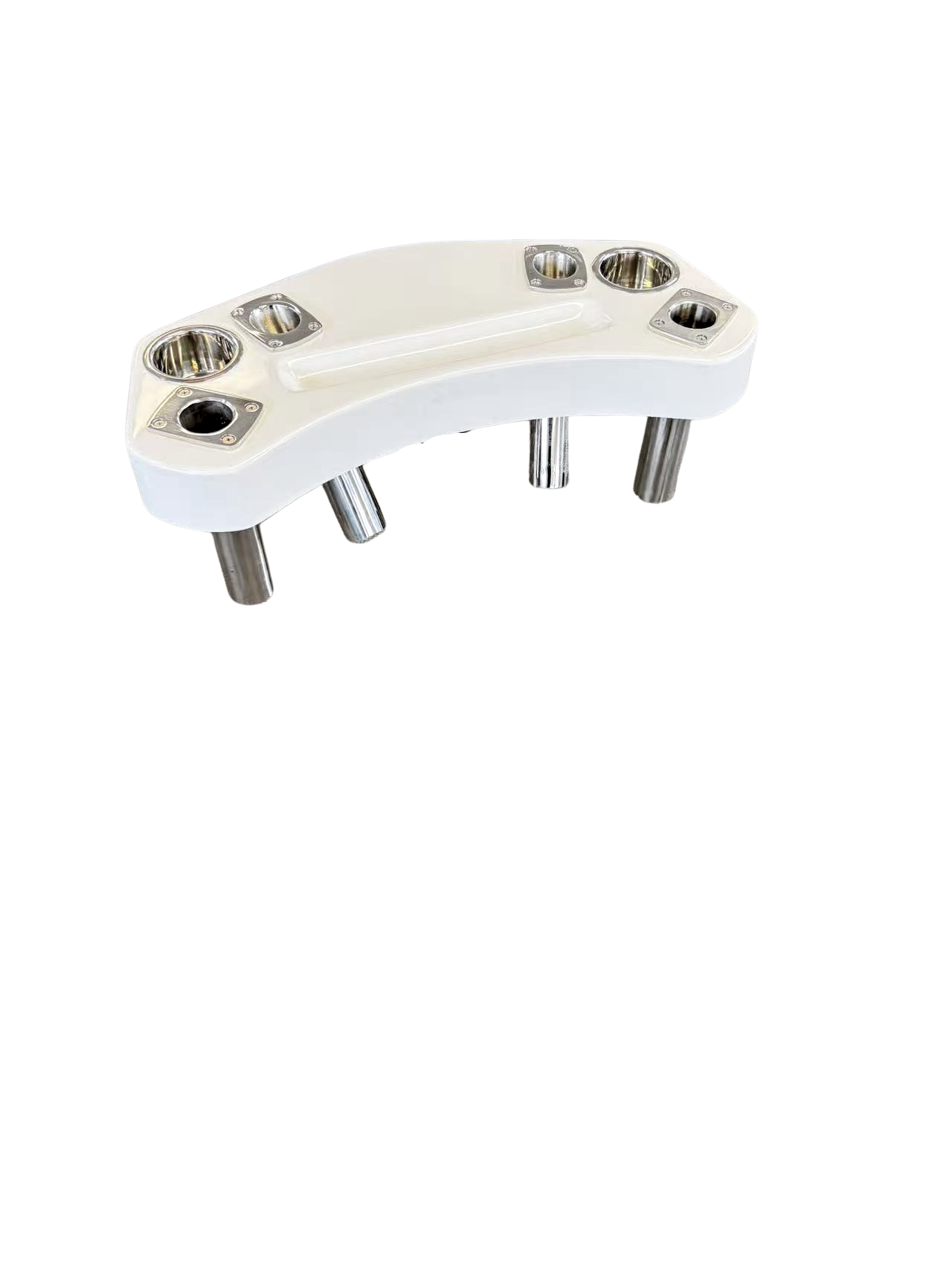 PREMIUM LEAN STATION Built with a mirror finished gel-coated top to give you that sleek look every boaties is looking for , this heavy-duty lean station is designed to handle rough conditions. Features include: 4 game-rated rod holders (2 x 30 degree, 2 x 0 degree), 2 integrated stainless steel cup holders plus Knife rebate. Easy connection to your game lean post. Built for strength and stability when fighting even the biggest game monsters. Made in Australia