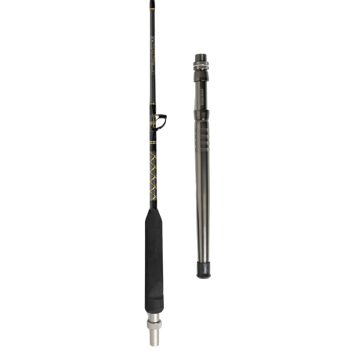 The GENESIS 'Final Edition' Rod Series is constructed with the latest rod blank technology - Carbon Kevlar, making it unbelievably strong and yet the lightest rods available. Born from the engineering minds at GENESIS Propellers which can be attributed to building the propellers that have powered the Australian Maritime Industry for nearly Four decades. The innovative spiral-wrapped guides allow for both overhead and spinning reels and the interchangeable butts allow for Straight Butts, Bent Butts and the Patented Genesis Adjustabutt. IGFA compliant.