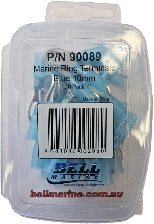 Marine Glue Lined Ring Terminal Blue - 10mm - 30 Pack