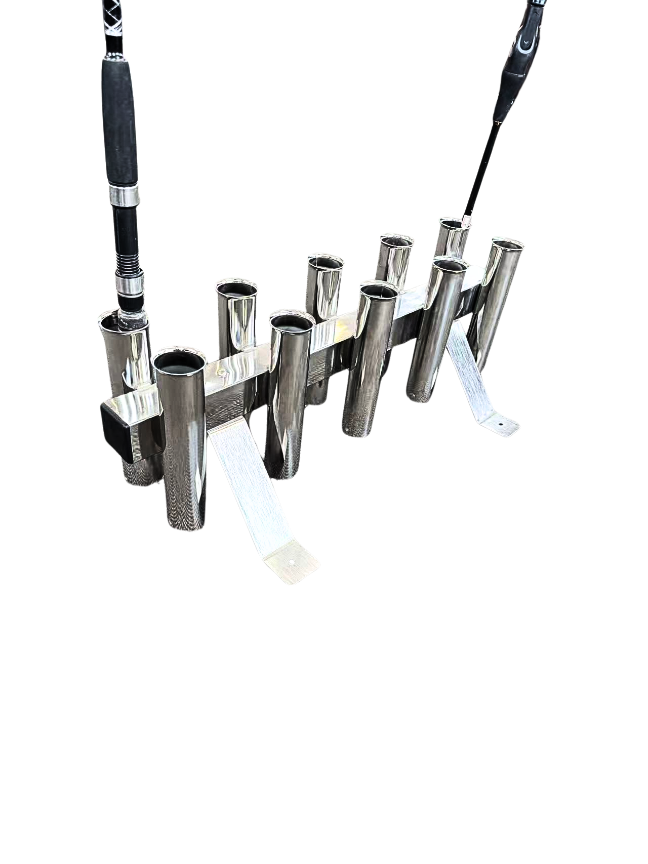 Sick of Damaging your Valuable Rods and Reels The new Viper floor mounted rod holder holds 10 rods (inc game rods) in a vertical position in your man cave or shed and bolts securely to the floor. Each hand polished s/s rod chimney has a gimble pin to hold your rods in the one position and flared ends to keeps both rods and reels secure and safe from damage. A must have for the fishing aficionado.