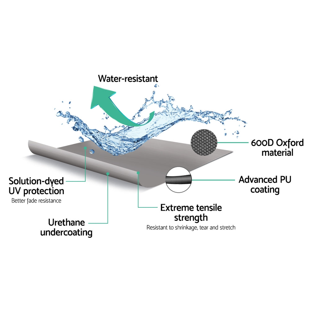 - Heavy-duty 600D polyester with PU coating