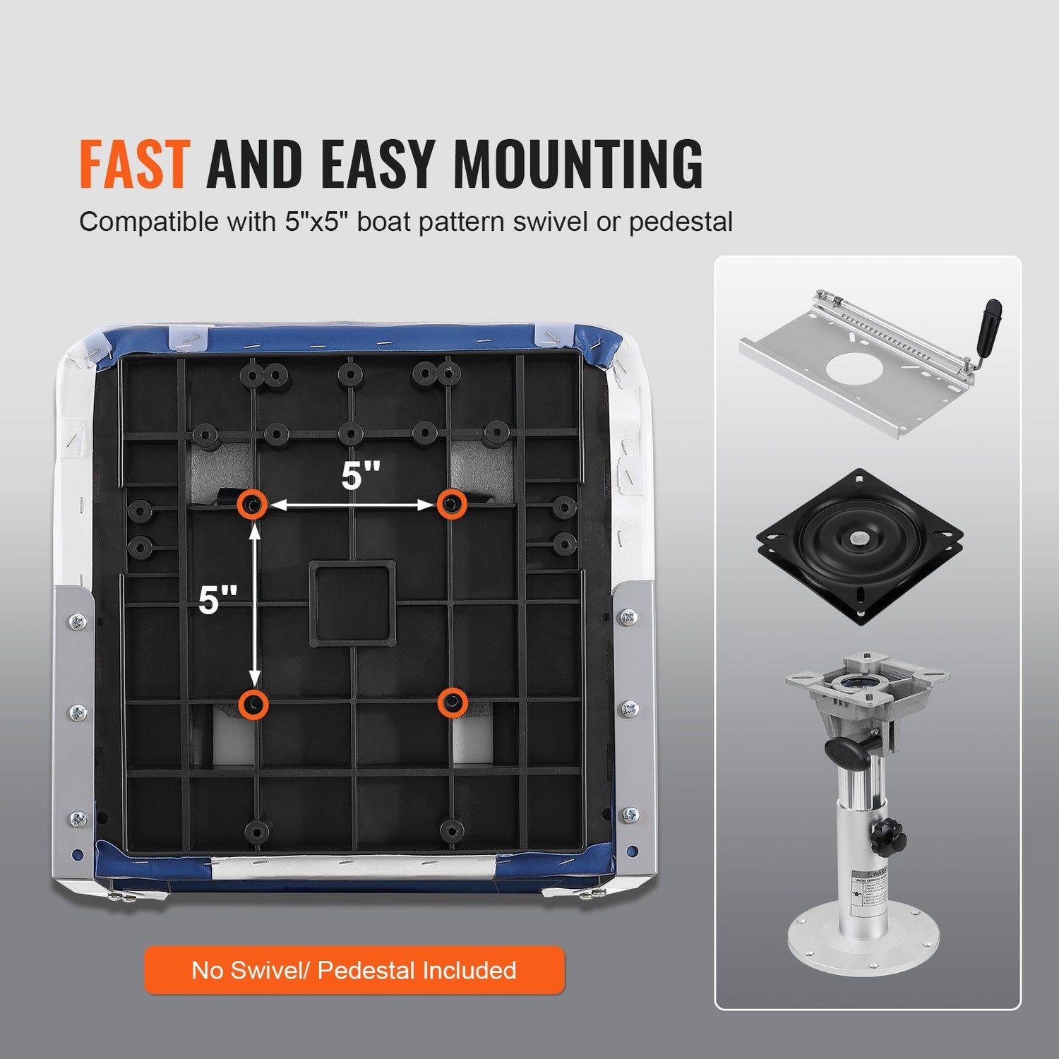 Install the boat chair is a breeze with a 5" x 5" boat pattern swivel or pedestal. We provide mounting screws and washers, making it quick and convenient to attach to most boat patterns. Please note that boat pedestals and boat swivels are not included.
