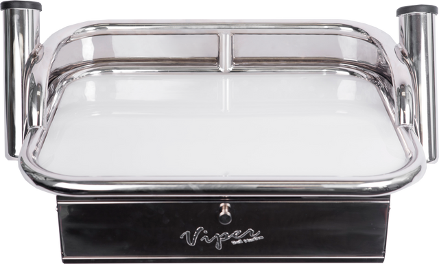 Dimensions: L620 x H250 x D380mm Storage compartment: L450 x W100 x H100mm Rod Holders: 45mm (I.D.) stainless steel with rubber caps Cutting Board: L330 x W470mm Leg Mounts: 38mm (O.D.) x 420mm marine grade stainless steel Our convenient drop in and lift out removable deluxe stainless steel bait board is manufactured from 316 marine grade stainless steel to complement your boat's other stainless steel fittings and is hand polished to a mirror finish. Cutting surface is resistant to abrasions whilst retaining your knife edge. Features include 2 stainless steel rod holders with rubber caps to protect your rods, and a large stainless steel bait/storage compartment under the cutting board and Polished Stainless Steel mesh guard at the back. Also included are 2 x 38mm x 420mm length legs and fittings. Compact in size and completely removable when not in use, it's the ideal fisherman's companion. The new improved Viper version allows you to attach the legs on the bait board in almost any position so it can be fitted into your desired location.