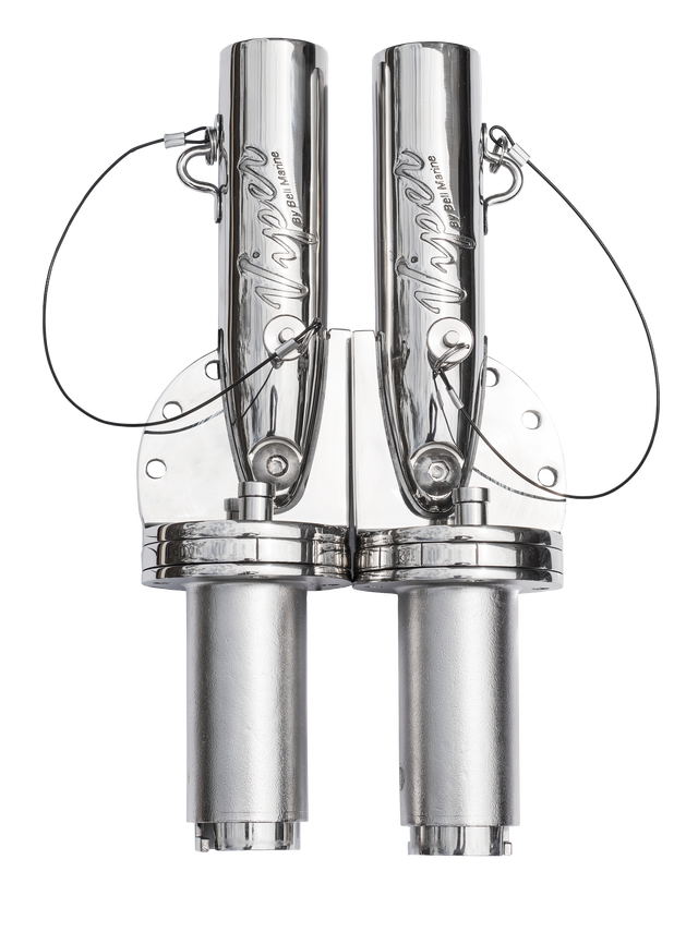 Viper Outriggers just got better with our new X-Treme Series. Viper X-Treme Outrigger bases featuring several improvements making them bullet proof! They are now fitted with heavy duty commercial stainless steel bearings to ensure smooth operation in any weather conditions, a new push pull pin adjuster with lanyard, new heavy duty solid stainless plate built into the base, new larger stronger forward/aft adjustment pin, heavy duty 5mm cast stainless base section for improved rigidity, resized deck fitting for a more snug fit. 180 degree rotation bow to stern adjustment, 90 degree vertical sky to water adjustment, with improved heavy duty spring loaded stainless steel locking pin. Easy to use adjustments to get your outriggers set into position! They are removable when not in use and when coupled with our Viper collapsible telescopic poles make for easy storage and are rated to handle the tough game applications. The 80001 bases are designed to be deck mounted in the gunnel, if you require cabin, hard top, or rocket launcher position look for our side mount bases 80014. Our X-Treme Series bases are fully adjustable without having to fight spline type alignment - just lift the spring loaded stainless steel pin, set and forget! Completely constructed from 316 marine grade cast stainless steel and hand polished to give that mirror finish you have come to expect from our Viper products.